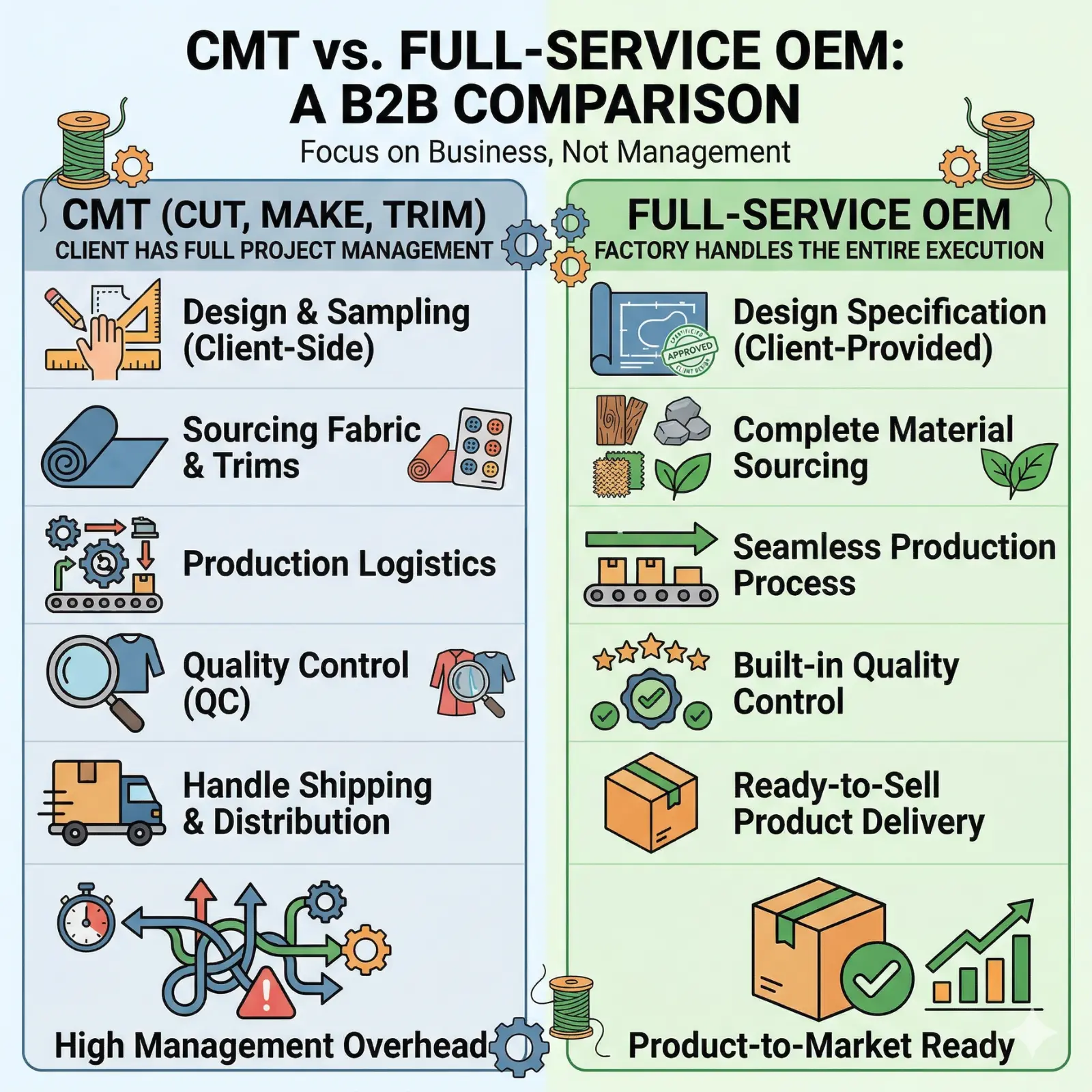 - Types of Clothing Manufacturers in Vietnam (OEM vs ODM vs CMT)